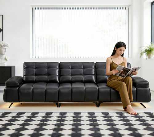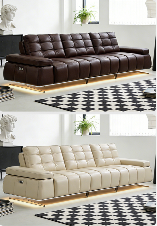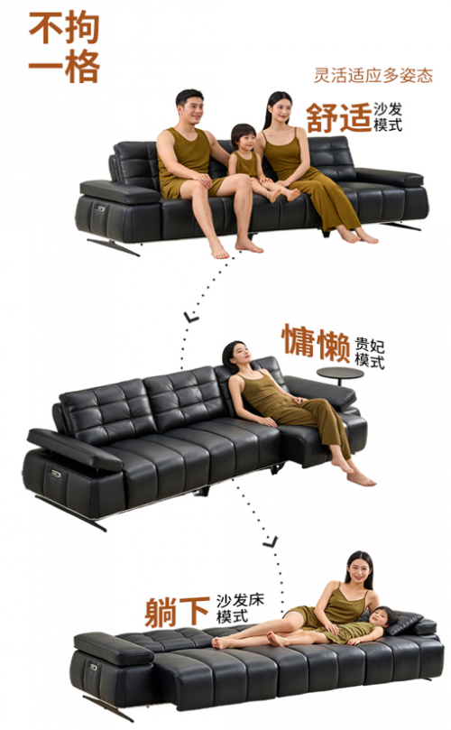 在功能配置层面,菲客家居智能电动推床沙发兼顾实用性与体验感。设计上,涵盖意式极简、慵懒风等多种风格,可适配不同家居装修审美;性能上,搭载德国OKIN低噪电机,支持一键平躺、伸展及多档位调节,满足观影、阅读、休息等多样化需求;材质上,提供头层牛皮、科技布等面料选择,高密度海绵搭配太空棉与蛇形弹簧,打造出软而不塌、久坐不累的舒适坐感;细节上,配备USB/Type-C充电接口,可搭配蓝牙音响、杯架等配套功能,同时支持语音、APP、遥控器多方式智能控制,使用过程更加便捷省心。
